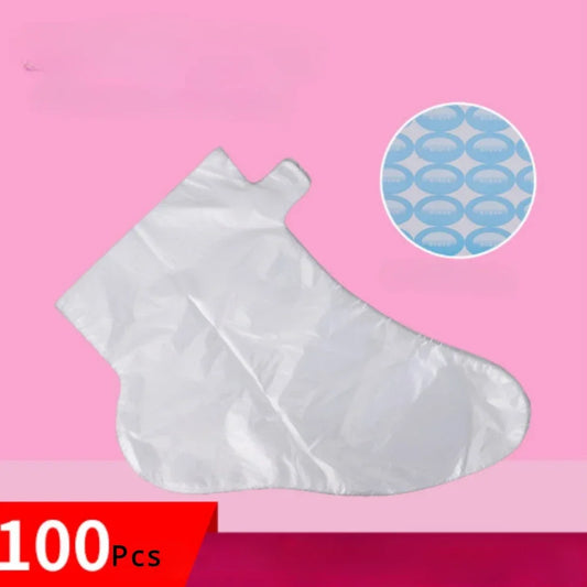 100PCS Transprent Disposable Hand Foot Bags Prevent Infection Remove Chapped Foot Hand Care SPA Wax Covers Bath Gloves Socks